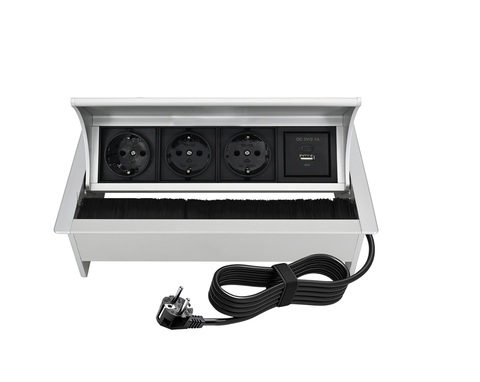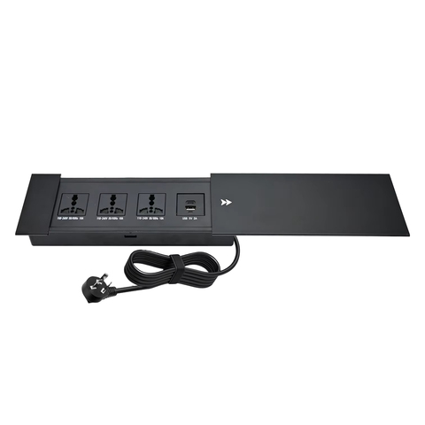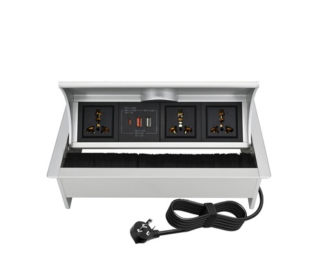 Aleación de aluminio Cubierta deslizante oculta Salida Sistema de tira de alimentación Caja de enchufe de escritorio con enchufes múltiples universales