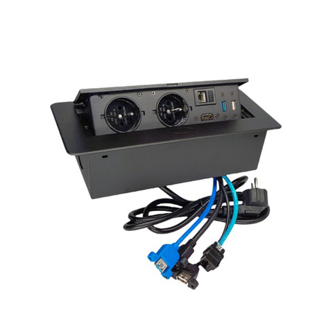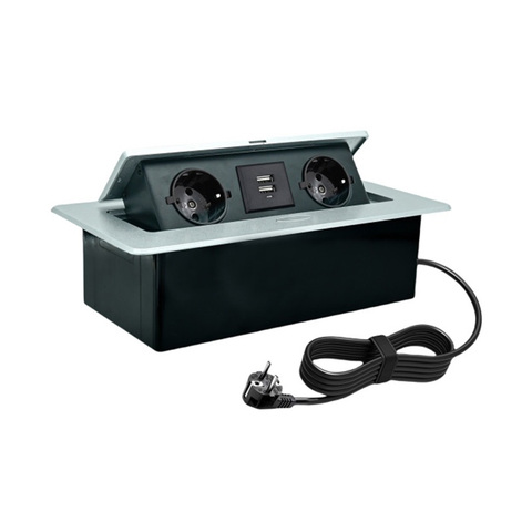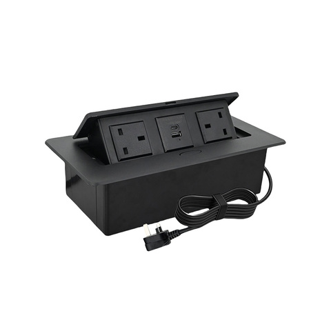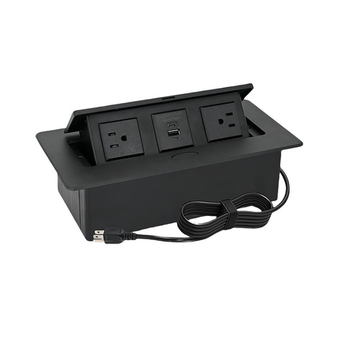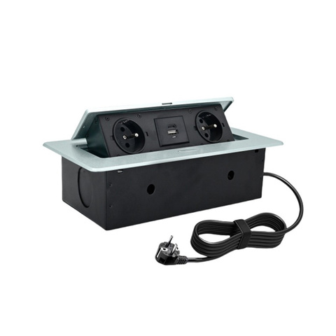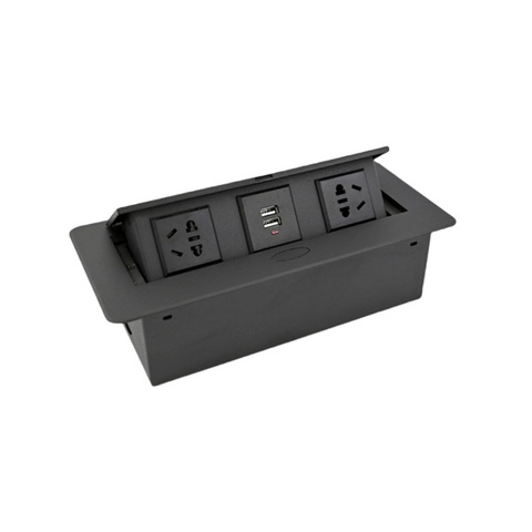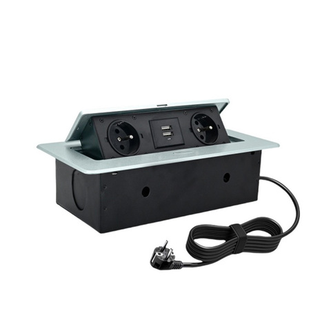 กล่องเชื่อมต่อแถบมัลติมีเดียสำหรับวางบนเคาน์เตอร์ศูนย์ของโรงงานเต้ารับแบบป๊อปอัพสำหรับเดสก์ท็อปพร้อมช่องเสียบ2ช่องและพอร์ต USB 2ช่อง