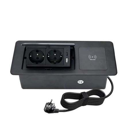 ฐานหนาสีดำฝังปลั๊กไฟมาตรฐานเยอรมันแบบซ่อนพร้อมที่ชาร์จ USB สำหรับโต๊ะประชุม